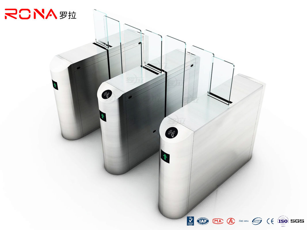 ইলেকট্রনিক সিকিউরিটি স্লাইডিং টার্নস্টাইল গেট পূর্ণ উচ্চতা SUS304 উপাদান আরএফআইডি কার্ড রিডার